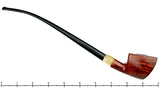 Cross grained from front to back, this long stemmed warden from RC Sands is a modern take on the deco themed pipe. A single piece of acrylic houses the mortise and the and while the stem is long, this is a an easy piece to manage. Exceptionally well grained, this stylized statement of life's enjoyment is packed with dense birdseye across the whole of the bowl's front and rear panels. A little long, a little different, but imminently smokable.