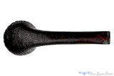Featuring Chuck's signature sturdy style, this scooped billiard is muscular and still a sinewy testament to the clencher's preference for a bend to offset the weight of a well insulated bowl. Drilled to dead center with a smooth and open draw, this hand cut brindle stemmed smoker is finished in a dark chocolate with dense rings cascading down the briar. Big enough to handle any blend, this slightly conical chamber is especially adept for an aromatic or sweeter english.