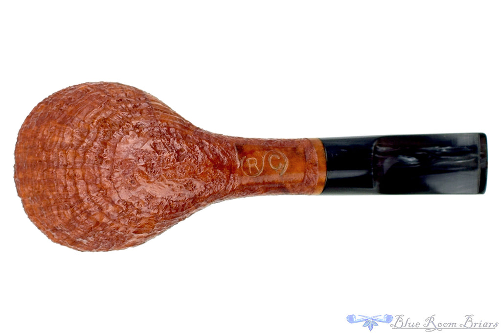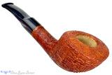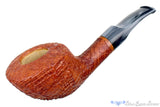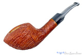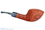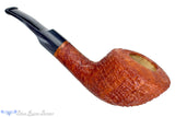 Astonishingly lightweight for such a sturdy and thick walled briar vessel, this RC Sands pipe from Ohio carver, Chuck Sands, features a tan blast with copious rings circling and shingled around the broad bowl. Saddle stemmed with a cloudy gray blue stem, not unlike a storm approaching the last rays of a beautiful day's sunset, this conical chambered smoker will always be a safe haven of blissful smoking solace regardless of port or weather.