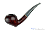 Nothing but curved lines and swollen proportions make up this quarter bent and satin blast acorn from American pipe maker, Sean Reum. The satin finish is a kind of hybrid between smooth, sandblast, and a driftwood finish that adds a subtle texture married to the actual grain patterns of the briar. Given a rich, dark finish, the results are impressive and set against the interesting 5 colored and limited edition brindle of grays, blues, and very slight rose tones, this singular smoker is a unique and compelling handmade. The sweet-spot sized chamber, capable of handling almost any genre of tobacco, is deep enough to be enjoyed for well over an hour and the bend is steep enough to offset the thick walls of the bowl for a comfortable all-day clencher.