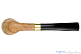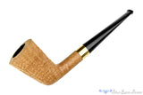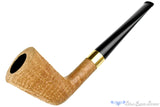 Slightly exaggerating the fine form of the classic shape, this canted and tall dublin stack from American carver, Sean Reum, features a very virginia friendly deep chamber, a thin and comfortable bite for clenching, and a wide brass band to set it off with a touch of bling. The ring blast finish is crisp and though it looks raw and natural, there is an actual finish here to help keep the color of the originally pale briar through many years of regular use. Light enough to effortlessly keep hanging from the teeth, this straight and tapered strawberry blonde bombshell may very well be the finest virginia smoker waiting to join your collection.