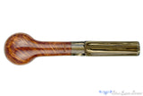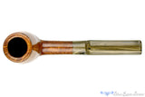 Occasionally on a Saturday, Todd takes the trek over to Marysville and visits the Blue Room Briars workshop where he and Jesse decide to work together on a particular project. "Work" is subject to debate as they clearly enjoy talking about tooling, equipment, tobacco, finishing techniques all why they look to be just standing around smoking their pipes. Somehow, when no one else is paying attention they managed to come up with this beauty that each credits the other for. Stamped with both their logos in the underside of the stummel, this tall and bowl coated, smooth finished, and saddle sand brindle stemmed beauty is a fetching cross grained smoker that both are proud to have been a part of.