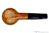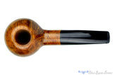 Squat and smooth, this very large tomato swells at the lower portion of the bowl as if its girth is struggling with gravity. Pleasantly round and finished in the ambered hue of whisky, this briar is made for hand holding. Balanced toward the chamber, the rounded rim plays a second fiddle to the grain, especially the bonanza of birdseye densely packed on the bottom of the entire stummel from bowl to shank. All told, a gorgeous package to display, but in our opinion, a magnificent vessel to smoke.