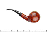 Both elegant and masculine, this bent and smooth beauty from Ohio pipemaker, Todd Harris, conveys a sense of calm reflection as a smoking implement full of confidence. The massive bowl insulates a sweet-spot sized chamber, cylindrical in design, with a rounded bottom drilled just right for easy maintenance of almost any tobacco genre. The radial grain from the contrast finish wraps up from the widest part of the bowl leaving the bottom of the stummel awash in densely packed birdseye. Two acrylic inserts in the stem help balance the palm sized bowl and the taper from the shank through the button trick the eye into seeing more length than is actually there. While the bite is comfortably thin, this hefty smoker keeps a marvelously smooth draw and is likely too heavy to make a clencher but a more than agreeable companion to keep the hand warm while in use.