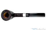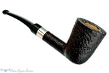 Lean and comfortable, this well shaped dublin from Todd Harris has a band of nickel turned by Todd, himself. The chamber is deep and well suited for virginias and sweeter blends, though be prepared to smoke for a good long while. Classically saddled, this clenchable sandblast has a perfect draw and promises nothing but fantastic smoking qualities. Distinctly finished in a glossy sandblast of rich mohogany that is just a shade or two this side of black, this dressed up smoker will continue to look good, even after smoking regularly for years.