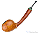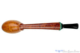 Representing the very pinnacle of artisan pipe making, this long shanked Phalanx from Todd Johnson has a remarkable length of solid shaped briar finished smooth in high-contrast with a perfectly oriented birdseye displayed on both profiles of the pipe. Ringed with green ebonite and balanced with a short, cookie jar saddle, this magnificently shaped smoker is just slightly asymmetrical with a subtle curve from the bowl all the way down the reverse tapered shank. Tapered in the chamber and exquisitely smooth in the draw, this glorious smoker of functional art is perfect in every regard and will always be a masterpiece without equal.