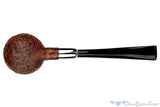 Brilliantly balanced and bathed in rippling growth rings, this silvery adorned prince from Trey's workbench in Texas captures his strong voice of American pipe design. Solid, based in the traditional form, and still elegantly masculine with thick walls of a well proportioned bowl, this subtly bent smoker is light enough to clench all day and is so well insulated, will be a joy to keep in the palm all evening. The perfectly polished rounded rim looks as if a briar bubble rose to the surface and is just about to pop, revealing a sweet spot sized chamber just big enough to be enjoyed for an hour at a time.