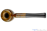 Though there is plenty of evidence that this handmade pear from the Swedish duo, Vollmer & Nilsson is extraordinary for its sumptuous curves and fetching proportions, it also boasts an immaculately done smooth finish in high contrast. The details of the grain are so crisp in person that the photographs just don't capture has impressive this thick walled smoker is. Gorgeous just doesn't do it justice, and with a narrow chamber, this good looking briar will continue to impress with a favorite virginia or narrow ribbon cut tobacco.