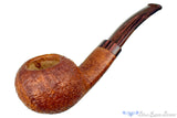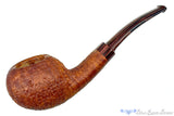 Well blasted in a kind of coppery british tan finish, this very wide chambered tomato from Bill is substantial in its capacity to hold tobacco. Matched with a lighter and striking brindled bent saddle stem, this wide oval shanked smoker will no doubt operate effortlessly given the easy, open, and smooth draw Bill engineers into all his pipes. After many years of regular use the darkened finish will still be well matched to the brindle stem, making this an excellent heirloom piece. As this ripe briar doesn't have a bowl coat, and really, with walls this thick it certainly isn't necessary, we are happy to provide one upon request.