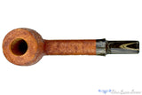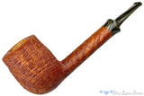 Mightily clad in continuous cascading rings and marvelously manageable, this magnum and scaled up lumberman from Bill Walther is a thing to behold. British tan is a popular finish, but when paired with a monstrously big block of straight grain briar, the impact is exponentially more profound. A flared crown saddle stem keeps it balanced in profile, while the use of the sand toned brindle keeps it interesting. Best of all is the perfectly tall and cylindrical bowl, promising lifetimes of great smokes at the end of this expertly engineered pipe. Too heavy to clench for any significant length of time, this phenomenal piece may require a comfortable chair to get the most joy from the experience.