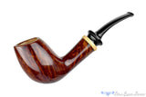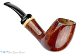 Flexing his Danish influences, Bill puts together a rich briar canvas of smooth finish with the pop of a clean ring of boxwood. A flared saddle and enough bend to make for easy clenching, this straight grained egg has a deep and wide chamber but comes without a bowl coat (don't hesitate to let us know if you'd prefer, and we will be happy to add one at no cost before shipping). Like all of Bill's pipes, this bent beauty has a deep slot and an impeccable draw.