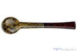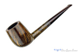 Sister to a sandblasted version we received at the same time, this classic straight billiard from Yorgos Mitakidis is reminiscent of a Comoy's Blue Riband. Or at least, if that Blue Riband went on a diet and was fitted with a brindle stem. The beautifully contrasted classic may appear strictly canon, but there are hints of a modern flair. Yorgos' design language exaggerated the back cheeks of the bowl, giving the pipe some visual weight toward the bottom and contributing to a sense of forward momentum. There is even a kiss of plateau on the bottom of the bowl, which is certainly not a feature seen commonly in pipe of English or French heritage. The dark brushes of straight grain are accentuated by a gradual lightening of color, from a honey brown at the rim, to a paler tone at the bottom. There is enough visual detail here to occupy a wandering mind and yet retain the essence of what it means to be a pipe.
