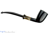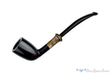 Elegantly scaled and impressively contained, this ornate Belge from Greece features a natural horn stem and a dark, shadowy smooth finish that maintains the grains pattern in a subtle reveal in the marvelously smooth surface of the briar. Extremely lightweight, this narrow chambered smoker has a perfect attunement for virginias and shag cut blends and can easily hang from the jaw all day long. Reinforced with brass around the mortise and fitted with a military mount stem, this beauty will be a dream companion for effortless satisfaction.