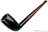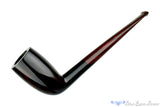 Graceful and supremely clean, this gorgeously shaped tall cutty from Greece is shiny, sleek, minimal, and superbly sexy with a classic taper in the cumberland brindle stem and an impressively tight transition from bowl to shank that can only be achieved in handmade briars. The smooth finish of antique and rich red on the bowl is difficult to fully capture in the pictures, but know that this is not a black stain and the cross-grain of cascading natural briar patterns can be seen in person, but only from a few inches away. A deep chamber of slight conical taper suggests a virginia, though the engineering is so well done this straight and beautiful briar will likely smoke anything extraordinarily well.