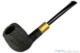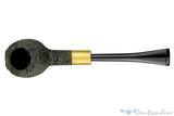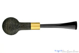Brass is nothing new to pipe adornment, but we were delighted to see Yorgos Mitakidis work in a band of brushed brass on this deeply sandblasted morta billiard. The dark and clean lines of the stummels finish are given some warmth by including the light diffusing metal that is securing the mortise of the military mount. An excellent composition inviting to anyone who knows about the versatility of smoking from this briar alternative and appreciates the handmade quality of such a superb fit and finish.