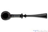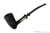 Ridiculously lightweight from the crown flared saddle stem to the tall acorn bowl, this strawberry wood smoker from Yorgos presents with a sandblast finish to reveal the unique characteristics of briar's cousin and alternative medium for smoking tobacco. The buffalo horn ferrule is a fine adornment, both useful and fetching as it has no color other than the black and white natural to this particular piece. Elegant and organic, this comfortable clencher is a perfect choice for any virginia or va/per blend though a fine shag would be a boon here too.