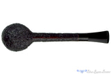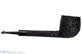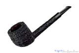 This is a fascinating pipe from Greek carver Yorgos Mitakidis. Is it a pot, or a lovat? Or both? It seems odd that in the entire English canon of shapes, this particular combination of long round shank and short saddle stem paired with a shorter bowl isn't more common. GBD made some examples, but these were usually bigger pipes with oval or paneled shanks. This pipe looks like a cross between a 1920's Dunhill and a pre-transition Barling, and that's high praise. The jet black, craggy sandblasted bowl is perched delicately on a pencil shank extending to a short, crisp saddle of black ebonite. But even with all of these vintage aspects, the pipe still retains an element that is completely distinct to Yorgos, with the full, lower bowl cheeks and forward momentum. It may look unassuming from a distance, but those who know pipes will definitely notice this one.
