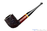 Classically shaped in a sandblast finish of deep and ring revealing detail, this Alpha Nobility billiard estate pipe is further dressed with a smooth, polished rim as well as a trim of acrylic sandwiched between two bands of brass. A sweeping tapered stem of acrylic promises to never oxidize and this comfortable clencher from Israel is also fitted with room for a 6mm filter, though not necessary to enjoy a great smoke. There is some modest rim darkening, but this lightweight and wide chambered smoker is still in outstanding condition.