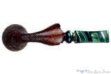 This stunning and well blasted freehand estate pipe is from the fifth run of our exclusive Blue Room Briars in-house production pipes. Made from old stock stummels that were likely originally shaped well over 50 years ago, these pipes were hand finished and engineered by Jesse in the Blue Room Briars workshop and are another in our line of acclaimed best smokers to ever hold tobacco. It has been re-shaped and hand engineered for perfect smokability, including a perfect fit and a smooth slot in the mouthpiece as well as a smooth and polished bevel into the chamber for a clean and finished look. This was from a small batch production and what has been produced is likely all we will ever do. There is no denying the charm and functional quality of a Danish inspired freehand and this one was finished in a deep burgundy and features a green acrylic stem. Like its cousins, it has an enormous and well drilled chamber and is in excellent condition.