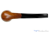 Made with a short diamond shank and a long diamond tapered stem, this Cellini bulldog estate pipe is slightly over bent to be a particularly comfortable pipe to clench. The chamber is just large enough to hold a favorite English blend without having to sacrifice any flavor for around an hour long smoke. There is some darkening around the rim and there are several minor handling marks, but this American-made rhodesian has an excellent draw and will easily pass a cleaner.