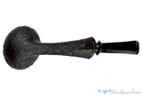 Lean and lengthy, this beautifully balanced and long shanked tomato from American pipe maker, David Huber, features an elongated bowl set askew to the bilateral axis of the pipe. Even more impressive is on closer inspection and with the exceptions of the chamber and the stem, the entire stummel is asymmetrical and still achieves that razor's edge between balanced and unique while still promising an exceptional smoking experience. Note the curve on the back of the bowl that resonates again at the smooth face of the shank and yet again at the sculpted flared crown of the saddle stem. Elegant, fierce, and with the powerful flowing presence, this American handmade is impressive in its shape and style, but wait until you get a chance to smoke it...