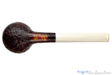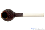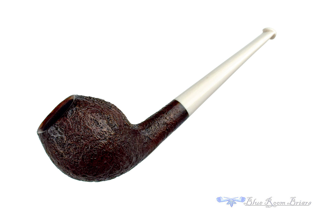 Beautifully blasted to reveal a bowl cheek framed by radiating growth rings, this Elforyn stemmed Devil Anse from Germany has a particularly thick wall and wide reach around the middle of the bowl. Canted forward and note the subtle striations in the faux ivory stem, this deliciously finished and straight smoker has a cylindrical chamber perfect for any blend worth a consistent draw from start to finish.