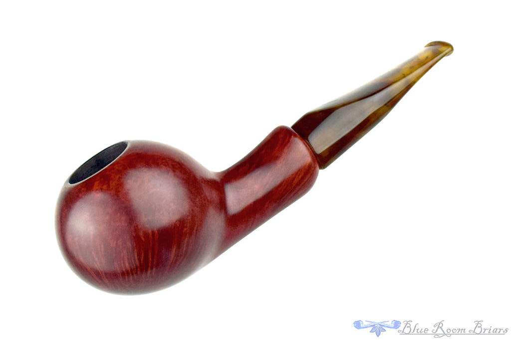 Quail hunting is traditionally accomplished with a good dog, sharp eye, and quick reflexes providing a demanding and satisfying outdoors activity worth celebrating with this unique shape for the famous annual series. Finished smooth and stemmed with a tortoise shell acrylic, this Erik Nørding Quail estate pipe, from the 1999 release of the Hunting Series captures the subtle shape of the animal's tail in the upturned and flared shank while the stem itself is credited for providing some autumnal color. There is a whisper of darkening around the rim but this versatile and sweet-spot sized chamber is an excellent vessel for almost any blend.