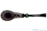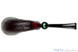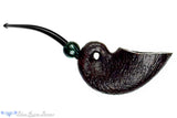 Carved to look as if the briar turned back in on itself, this nautilus estate pipe, or horn of cornucopia, from HS Studio is further adorned with an insert of green acrylic on the stem. Too heavy and lengthy for long sessions of clenching, this palm friendly smoker from China is still comfortable between the teeth. In excellent condition with an open draw and well placed draft all the way down at the very bottom of the conical chamber, this eye catching smoker will be a pleasure for any burley based or aromatic blend.