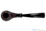 Deeply rusticated in a dark, gnarly finish that isn't quite a true black, this Pietenpauw handmade estate pipe from South Africa is fitted with a long military mount stem of comfortable ebonite and when in direct sunlight, picks up a subtle red tone in the stummel. Deep and narrow enough in the chamber to host a Virginia or Virginia based blend, this bent and thick walled smoker is a born clencher and is in excellent condition with a fantastic draw. Understated and easy to remove and replace the stem, even while in use, this very practical smoker is versatile and palm friendly by always staying cool in hand.