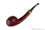 A generously curved shank of length that has a panel on both sides and a short saddle stem with an insert of macadamia balances this well proportioned bulldog from American pipemaker, Jesse Jones. A classic double bead graces the bowl and the chamber isn't too wide to turn away a straight virginia or so deep as to take much more than an hour to get to the bottom. Smooth at the rim which matches the macadamia in tone, this American handmade is effortless in its draw and a sure favorite amongst the finest of smokers.