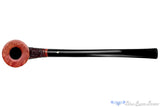 Handmade in Italy and given a contrast finish of rusticated carving, this wide bowled and broad rimmed Mastro Geppetto bent dublin warden estate pipe has an impressive long and bent stem. The rim has been polished smooth and showcases the red tone that peeks out from the rest of the rusticated stummel for a striking pipe, both new and aged. In near pristine condition for having only been very lightly smoked, this acrylic stemmed, Italian churchwarden has a deep chamber, thick walls, and an excellent draw. Note that this pipe comes with its original sleeve.