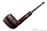 Made in London, this English Orlik sandblast billiard estate pipe is fitted with a saddle stem to keep the weight of the thick walled stummel to a minimum. While it is comfortable to clench, some may find it too hefty to keep hanging from the jaw throughout the entire smoke. With a deep and wide chamber, that smoke could take several hours at a slow pace. The sandblast finish is distinct though quite tight and could be from a very old stummel. Big enough to enjoy the broadest of leaf, we encourage the use of complex and tongue friendly blends in this well restored English smoker.