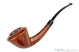 After leaving Coral Springs, FL and the The Briar Workshop, Elliott Nachwalter relocated to making pipes in the back of his shop in New York, NY. Later he would go on to acquire the Wilke and move again to VT, but his time in New York produced some elegant and creative shapes that still inspire today. This wide chambered and completely UNSMOKED, gracefully bent dublin estate pipe features a tapered shank and minimal saddle resulting in a comfortable clencher surrounded by contrasting straight grain. The chamber is steeply tapered to the bottom making this vessel an excellent choice for top note tobaccos like a favorite aromatic or hybrid blend. In pristine condition with a thin bite for easy clenching regardless of experience, this American handmade has waited over a quarter century to begin its generational journey as a favorite smoker.