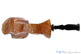 This Preben Holm Delight handmade freehand estate pipe from Denmark features both a sandblasted and smooth finish with patches of growth rings and straight grain present in the finish. Far too heavy to clench for the long sessions, this freehand has a relatively modest sized chamber for so much wood, making it a sure bet for almost any kind of favorite tobacco. In excellent condition with just a touch of rim darkening, though the stem's logo has been well worn and over buffed. This Danish handmade has a particularly wide chamber that quickly cones to the draft at the bottom making a perfect vessel for burley based aromatics and hybrid English blends.
