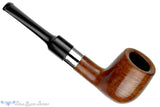 Stemmed with a classic saddle and given a thick round shank, this nickel banded billiard Redwood estate pipe cuts a traditional profile with clean lines and a sweet-spot sized chamber. Narrow enough to handle a Virginia without scorching the smoker's tongue and wide enough to take on the complex blends from England, this versatile smoker is in outstanding condition with just a minor scuff on the bottom of the nickel, and even has room for a 6mm filter, though not necessary for an outstanding smoke.