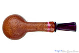 Who says all great pipes have to be dull and conservative. Tom Richard took this simple blast apple and dressed it up considerably with a band of acrylic, a flared ferrule of rosewood, and a crowned purple brindle stem. Much like the Danish masters that celebrate color, as opposed to avoiding it, we can't help but picking it up and studying the contrasts again and again. The blonde blast has darkened with use but still reveals plenty of rings and the sinuous shaping is spot on. Perhaps this lovely smoker is best suited for those occasions when mediocre-everyday-plain-old-more-of-the-same just won't do.