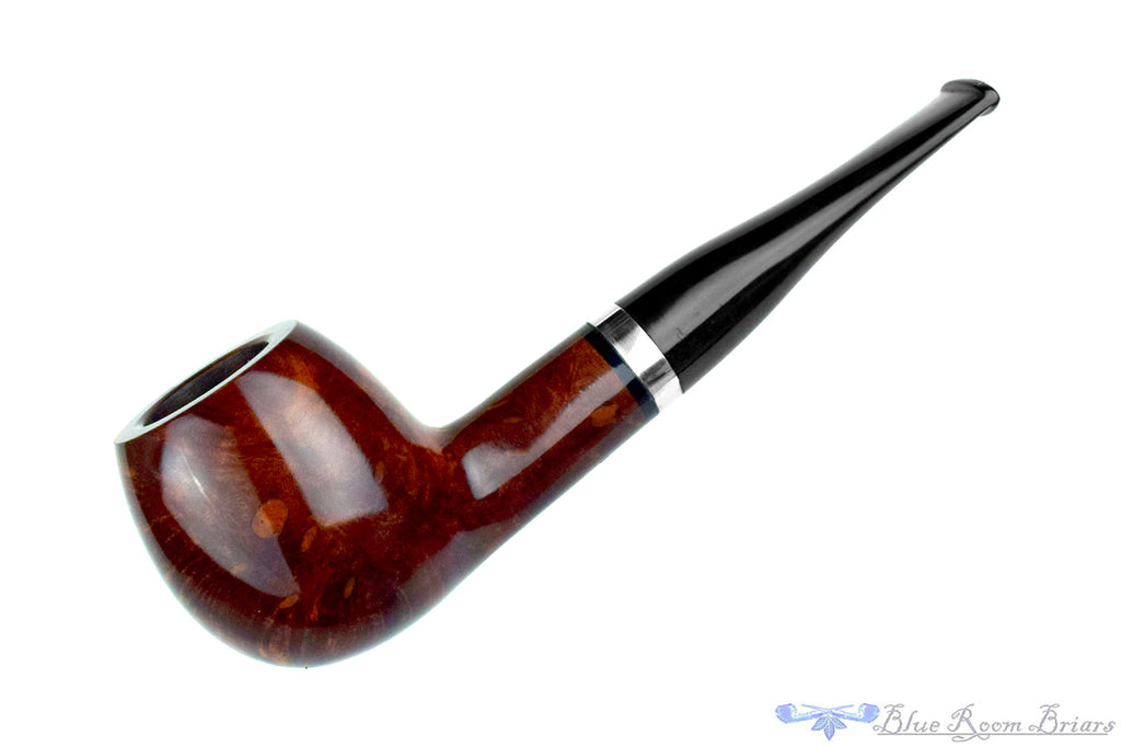 Plump and finished smooth, this Viking Classic handmade estate pipe from Denmark hits all the right boxes for shaping and finish. Unfortunately, this specimen is also full of fills in the finish. Although purely aesthetic, this nickel banded beauty has a ton of character in each flaw that was filled in the factory. Wide in the cylindrical chamber, this smooth drawing and sturdy apple has plenty of room for a broad cut of leaf and the smooth draw ensures a dry, sweet, smoke no matter what your favorite blend might be.